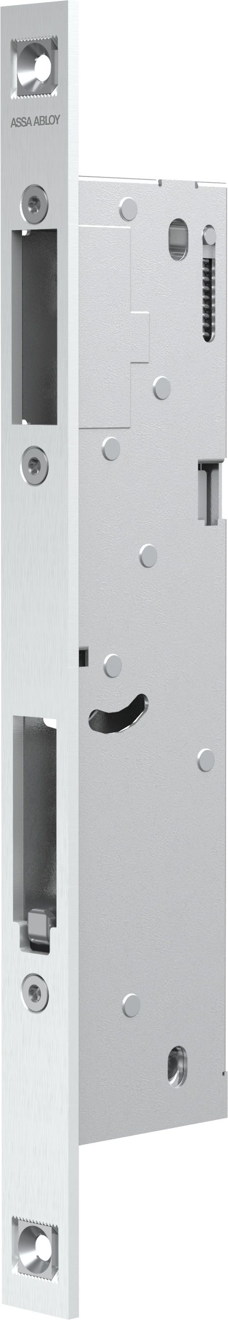 Kantrygiel OneSystem N1910 do automatycznego zamykania skrzydła pasywnego do góry i do dołu, do drzwi dwuskrzydłowych. Do stosowania z zamkami One-System serii N1050, N1550 i N16XX w drzwiach dwuskrzydłowych.