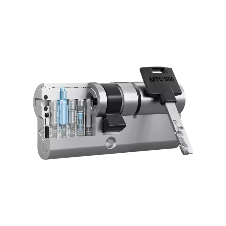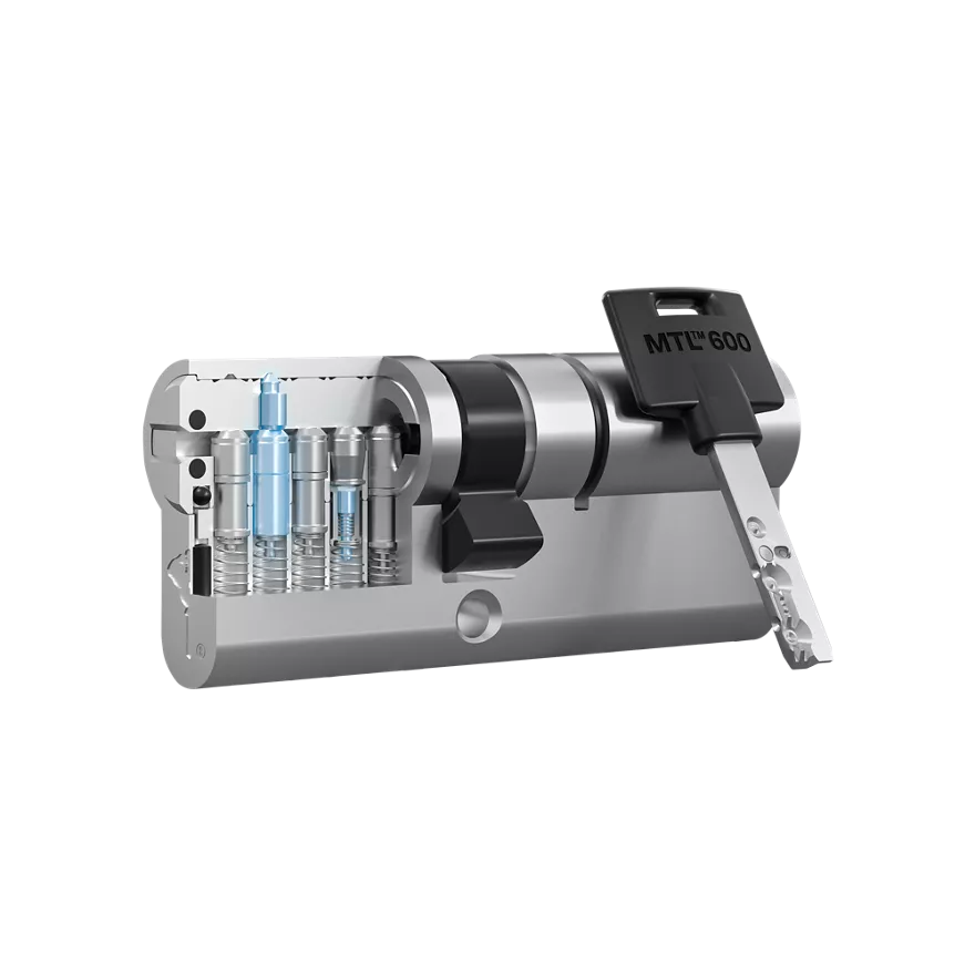 Platforma MTL 600 od Mul-T-Lock, będąca zaawansowaną wkładką bębenkową, wykorzystuje innowacyjne rozwiązania mechaniczne, aby zapewnić najwyższy poziom bezpieczeństwa. Zawiera opatentowaną technologię, wzmocnioną ochronę przed kopiowaniem klucza oraz duże możliwości przeliczeniowe w Master Key.