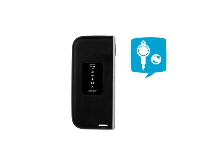 Programatoarele mobile sunt purtate de lucrătorii mobili pentru actualizarea cheilor din mers. Tastele CLIQ Connect compatibile cu Bluetooth și aplicația pentru smartphone CLIQ Connect oferă o alternativă la dispozitivele mobile de programare. Sarcinile de programare pot fi transmise sau colectate de la cheile de programare prin intermediul programatoarelor de la distanță. Programatoarele mobile permit interacțiunea zilnică între utilizatorii site-ului dvs. și sistemul CLIQ. Ele transmit autorizații de acces sau actualizări de valabilitate și oferă, de asemenea, funcționalitate online de rezervă în cazul pierderii conexiunii la server. Se potrivesc perfect pentru soluțiile CLIQ Go și CLIQ Web Manager Remote.