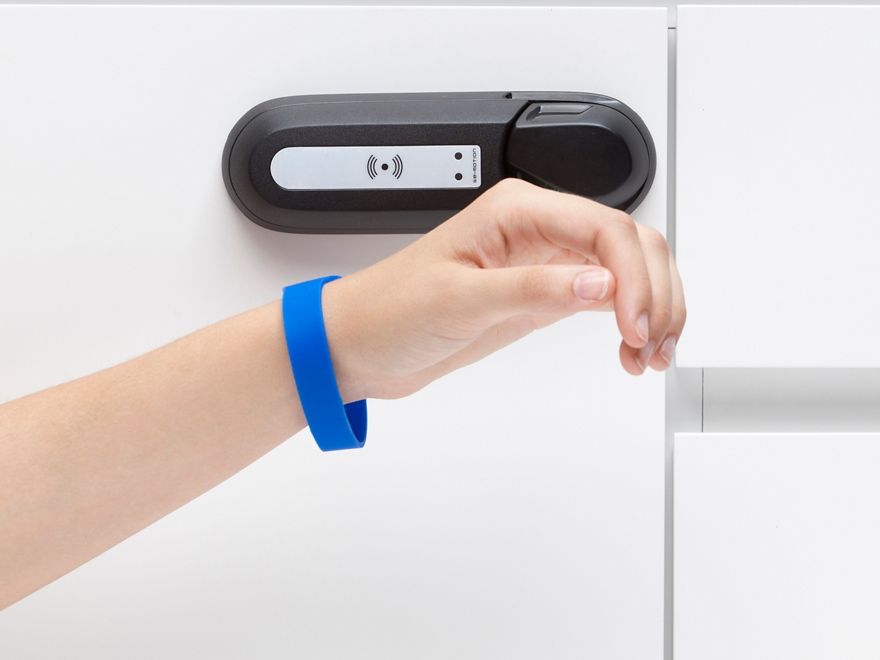 În timp ce dulapul nu este utilizat, butonul său se rotește liber pentru a preveni forțarea încuietorului. La prezentarea unei acreditări autorizate, dulapul se deschide. De asemenea, este posibilă programarea deschiderii automate la anumite ore.