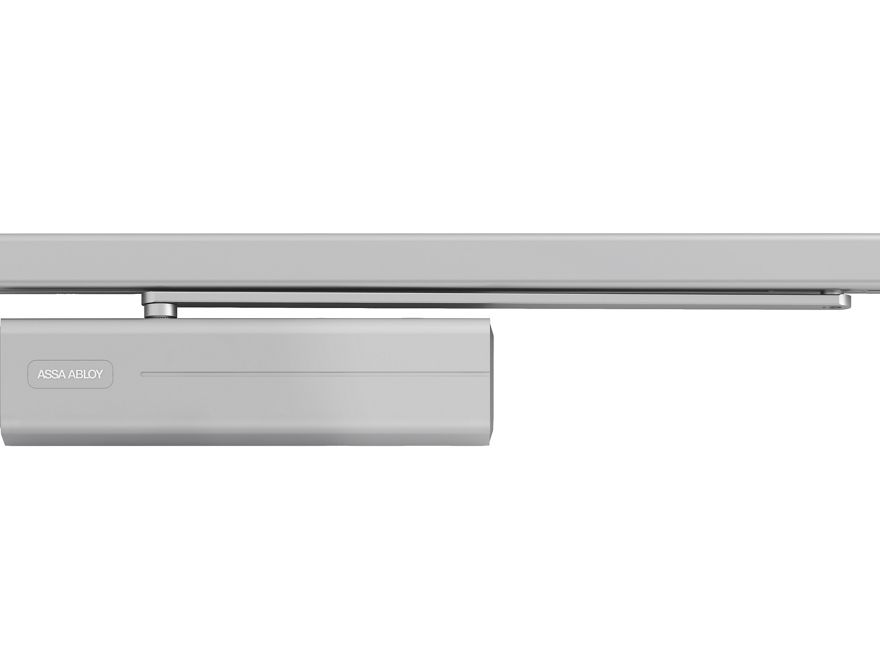 -amortizor hidraulic cu tehnologia Cam-Motion şi şină cu dispozitiv electro-mecanic de menţinere deschisă a uşii, pentru uşi simple;