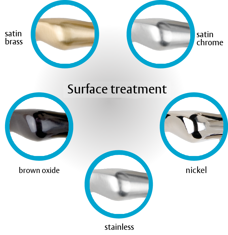 Satin Chrome is a very durable surface treatment, suitable for both indoor and outdoor use in doors with high opening frequency. Similar to bright chrome apart from satin brushing that is done before chrome plating.