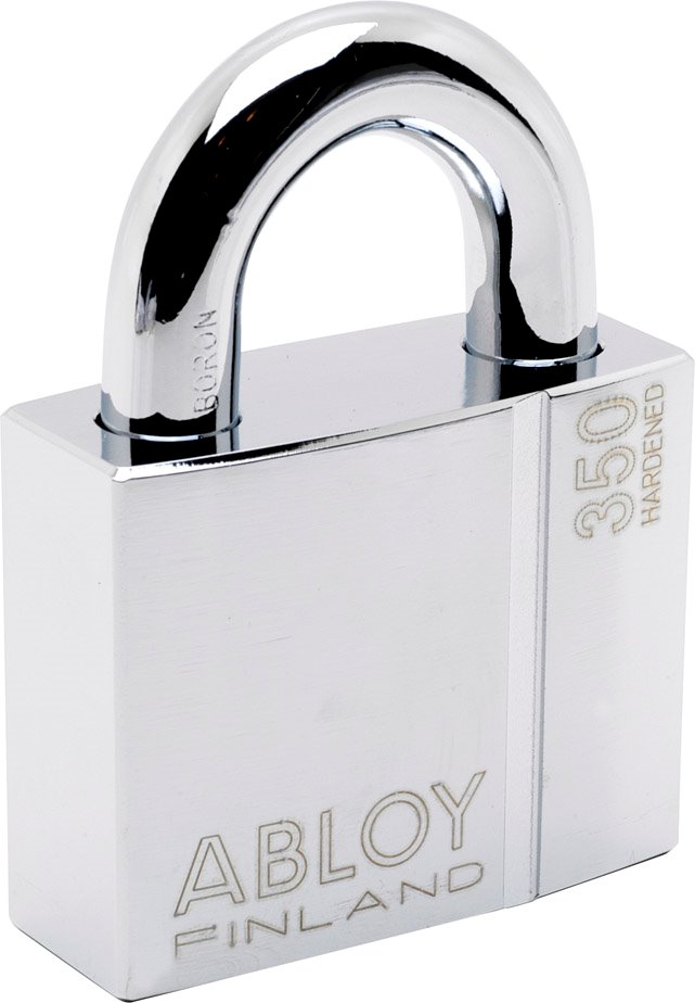 Låshus i förkromad ythärdat stål. Bygel av förkromat härdat boron stål. Kistbredd 71 mm, bygeldiameter 14 mm. Två nycklar ingår, urtagbar endast i låst läge. Lämpligt för utvändig låsning av containers, dörrar, portar, luckor och galler.PL350/50