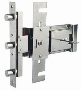 - Låset har tre regellänkar, vilka efter ett kvarts varvs handtagsvridning, ger utlåsning av 20 mm åt 3 olika håll