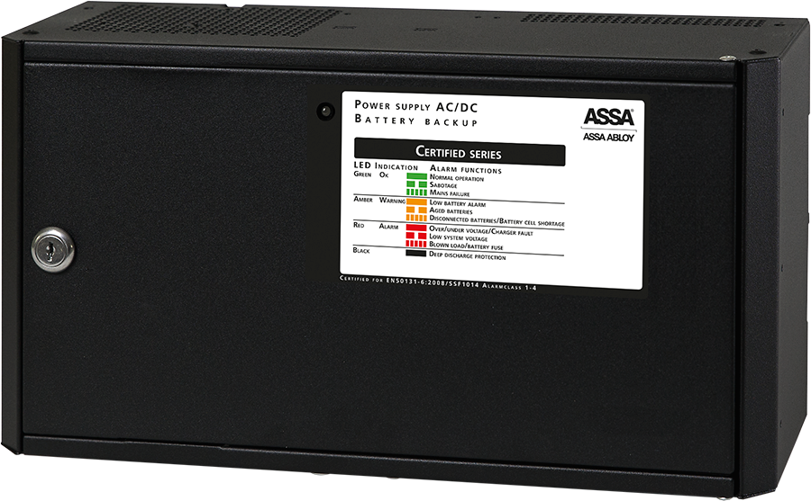 ASSA ABLOY 15PSC L II är ett smart 24V/15A batteribackuplösning till ARX säkerhetssystem som är larmgodkänd enligt SSF1014. Enheten kommuniceras via ASSA ABLOY ARX som övervakar status på batteribackupen t.ex aktuell strömförbrukning, historik över dygnet, temperatur så den inte blir för varm eller kall, fördröjt nätbortfall för att undvika falsklarm och batterikapacitet för att kunna larma när batterierna börjar ta slut i anläggningen.