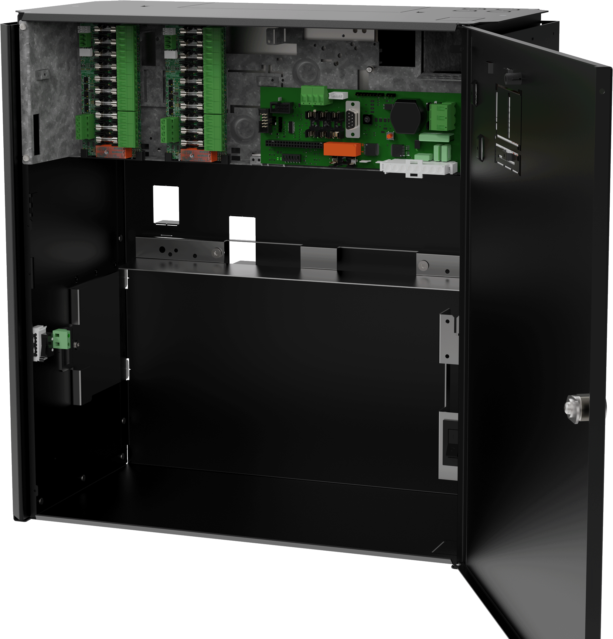 ASSA ABLOY 25PSC L II har plats för upp till 2 st 45Ah batterier och kan vid behov kompletteras med en batteribox – ASSA ABLOY BB for PSC II. Batteriboxen placeras under nätaggregatet och kopplas enkelt ihop med inkluderad kabel. I batteriboxen ryms upp till 2x 45Ah batterier.
