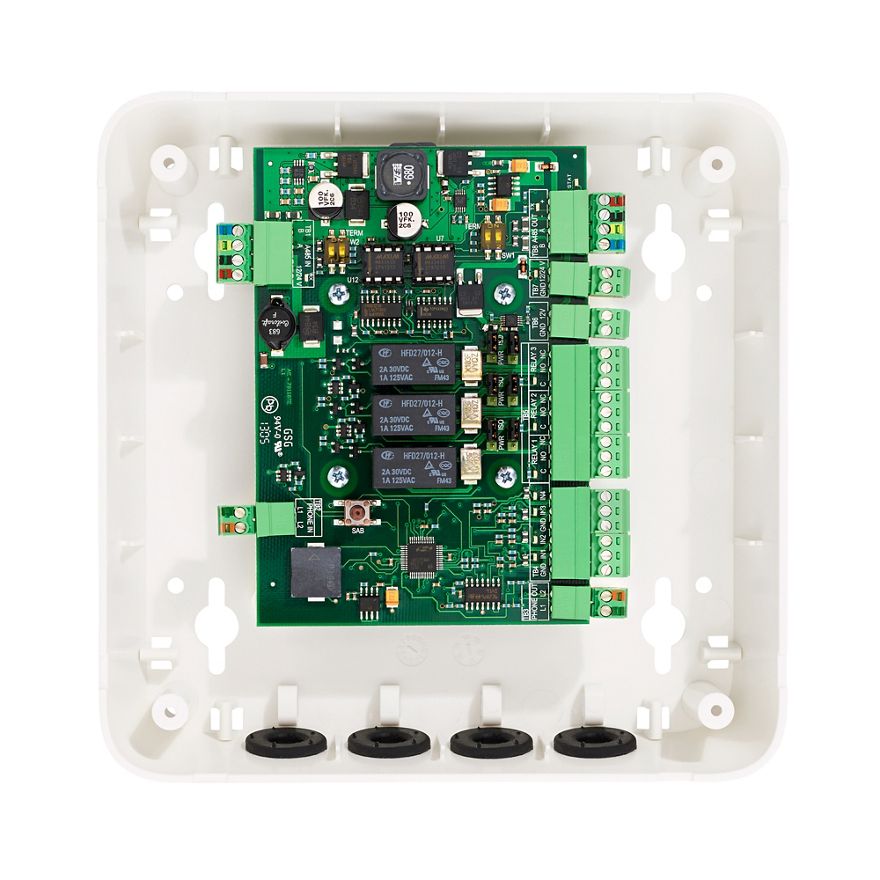 Extern anslutning av signaler och styrningar för dörrmiljön. Koppla 4300 har fyra dubbelbalanserade ingångar och tre utgångar.