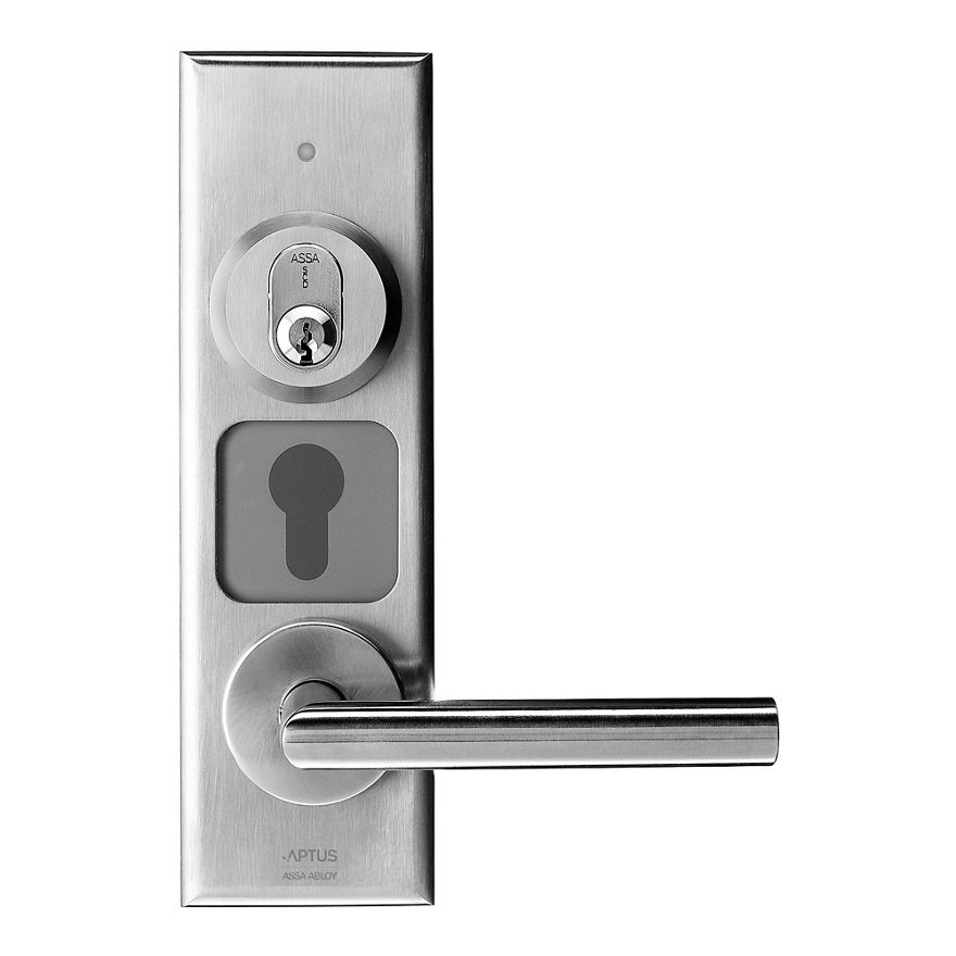 Läsare för montering direkt på dörren med hål för låscylinder.