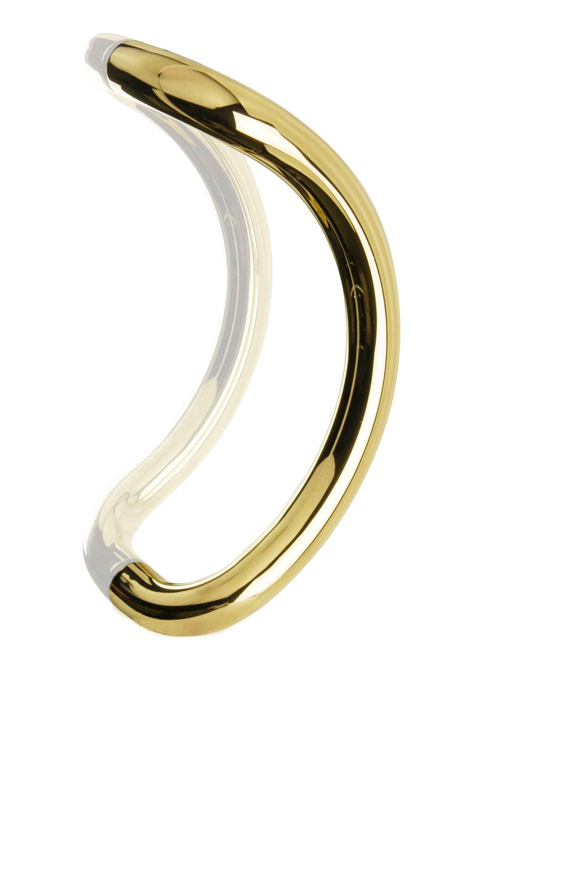Ett vackert och enkelt draghandtag med inspiration av "funkis" i de svängda formerna. Med sin enkelhet passar det till de flesta dörrar.