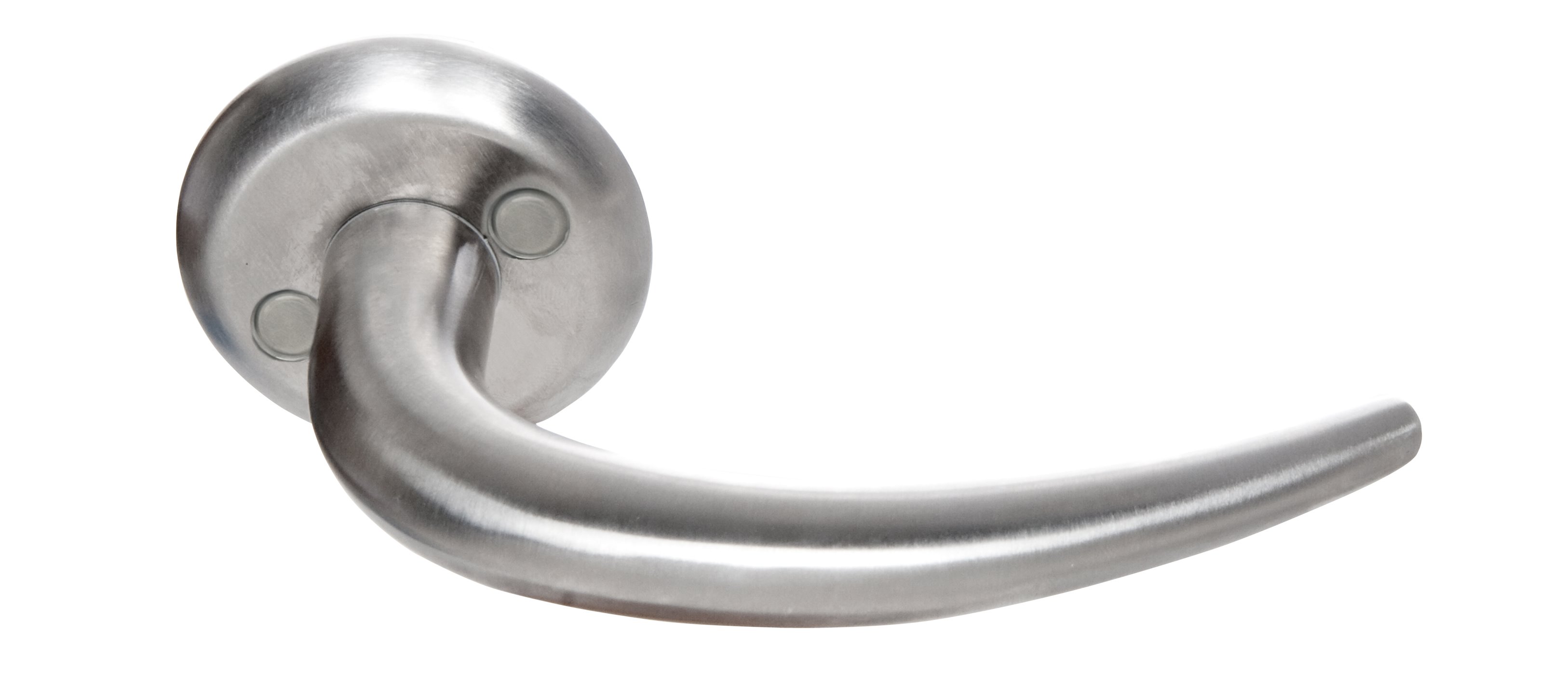 Ett rostfritt trycke utan returfjäder avsett för innerdörrar i kontors och bostadsmiljö.