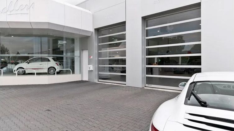 Från bilhallar till brandstationer – det finns lokaler där total synlighet är avgörande. OH1042FG är en slitstark men elegant port som släpper in ljus och skapar en bättre arbetsmiljö. Den öppnas uppåt längs taket och sparar därmed plats runt ingången, oavsett byggnadstyp.