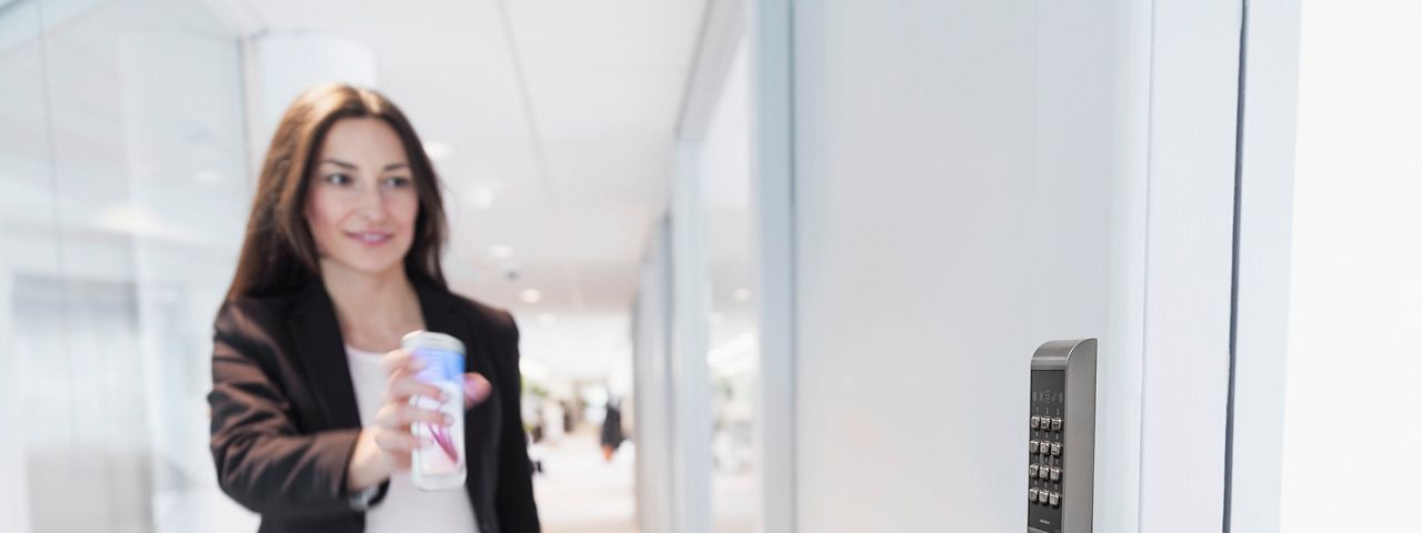 En entrédörr eller de flesta andra dörrar kan enkel öppnas genom att röra vid kortläsaren eller trycka på nollan. Då aktiveras läsaren och läser kortet i din mobiltelefon som kan ligga kvar bekvämt i din ficka.