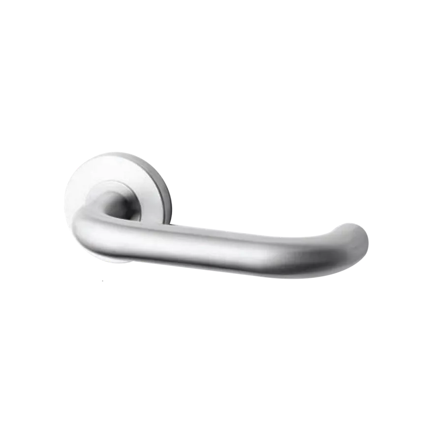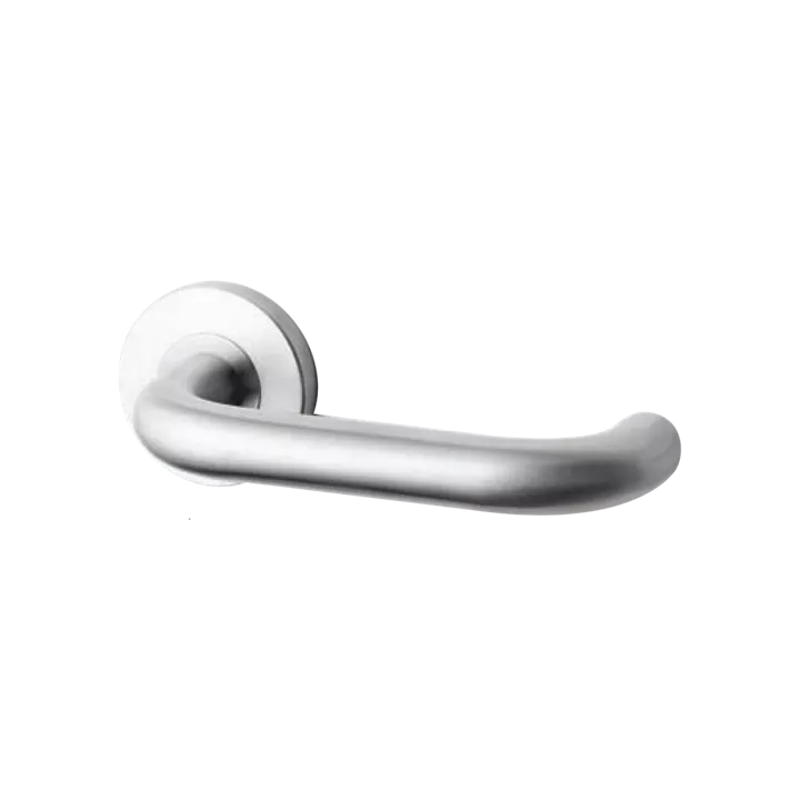 Model No.: ATL-010 Description: Solid Lever on Rose Dimensions: Length - 130mm Spindle: 8mm x 8mm Straight Spindle Standard Round Rose: Ø54mm x 8mm Finish: Satin Stainless Steel - US32D