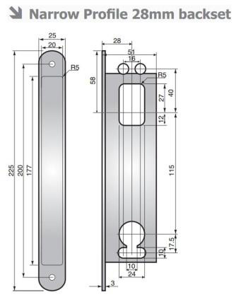 ASSA Modular 13787 narrow profile Scandinavian oval cylinder hookbolt lock