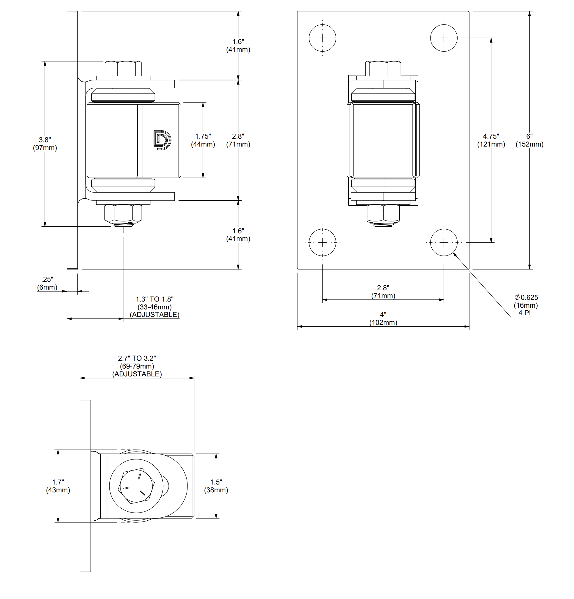 The Bolt-On BadAss was designed to be used on gates where welding the hinges to the gate and the end post is not an option. Due to SHUT IT’s unique bushing design The Bolt-On BadAsses, like all other SHUT IT gate hinges, produces near frictionless movement with maintenance free usage.