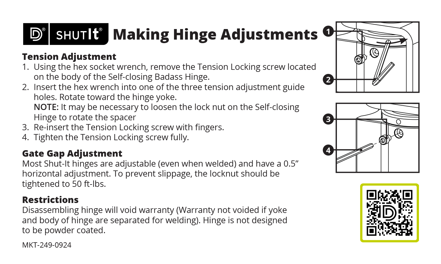 Shut It ® self-closing hinges for heavy or high-traffic gates. Provide safety, privacy and security by ensuring gates close and latch properly. Easy to install and adjust for perfect installation.