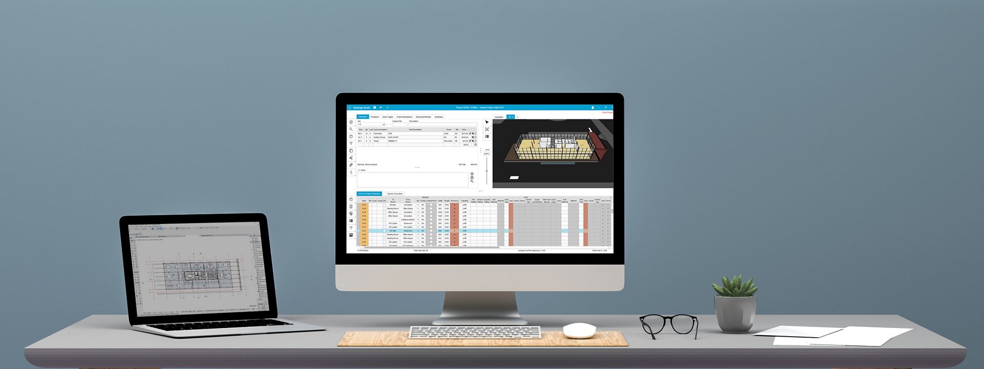 Integrating with design software such as Autodesk® Revit® and Graphisoft® Archicad®, Openings Studio creates and visualises openings for complete door hardware schedules and specifications - delivered faster and easier! In addition, build and customise door families, door schedules, and elevation sheets in just a few simple steps!