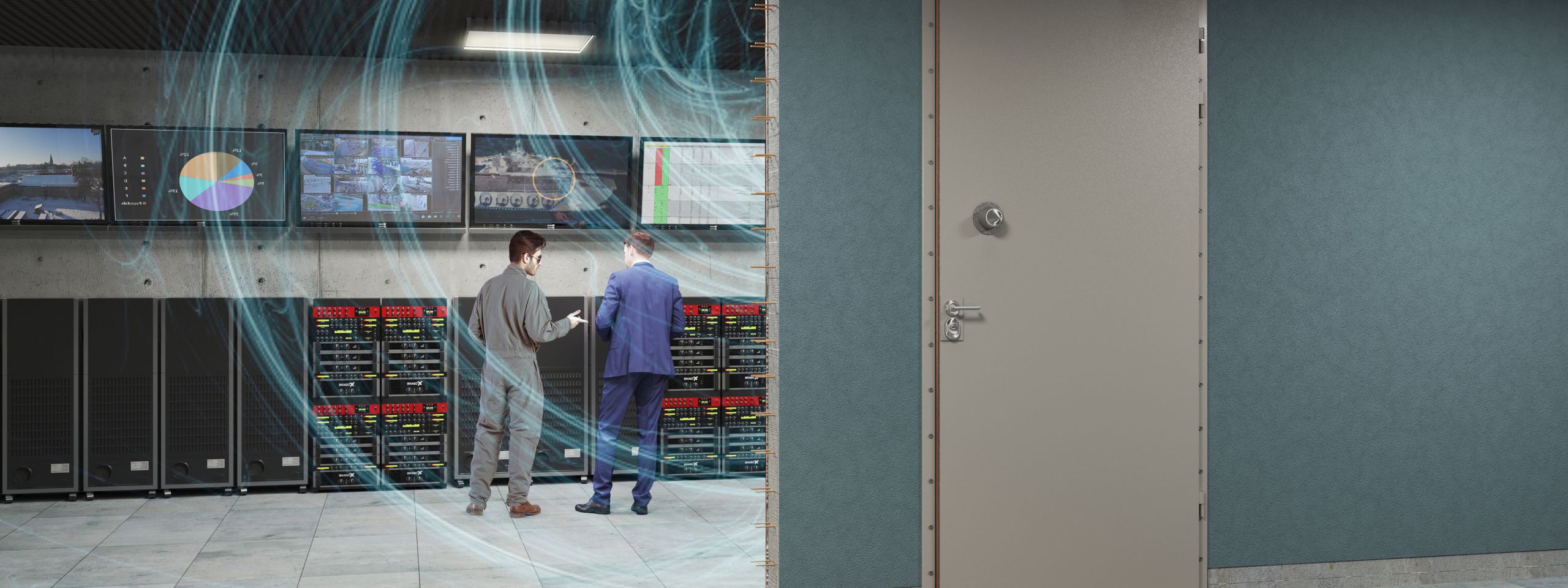 The TEMPEST Door is a dual-threat solution — engineered to block radio frequencies (RF) and electromagnetic (EM) signals while resisting forced entry.